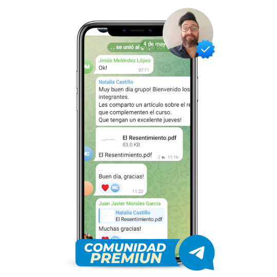 Acceso a mi comunidad exclusiva VIP en Telegram en donde resolverás tus dudas con el profesor a lo largo de este recorrido.